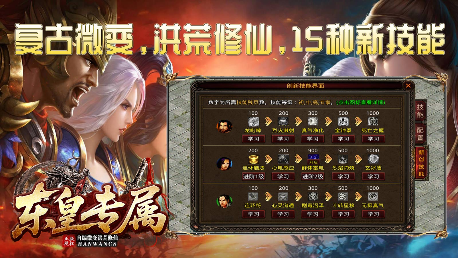 复古微变,洪荒修仙,15种新技能。